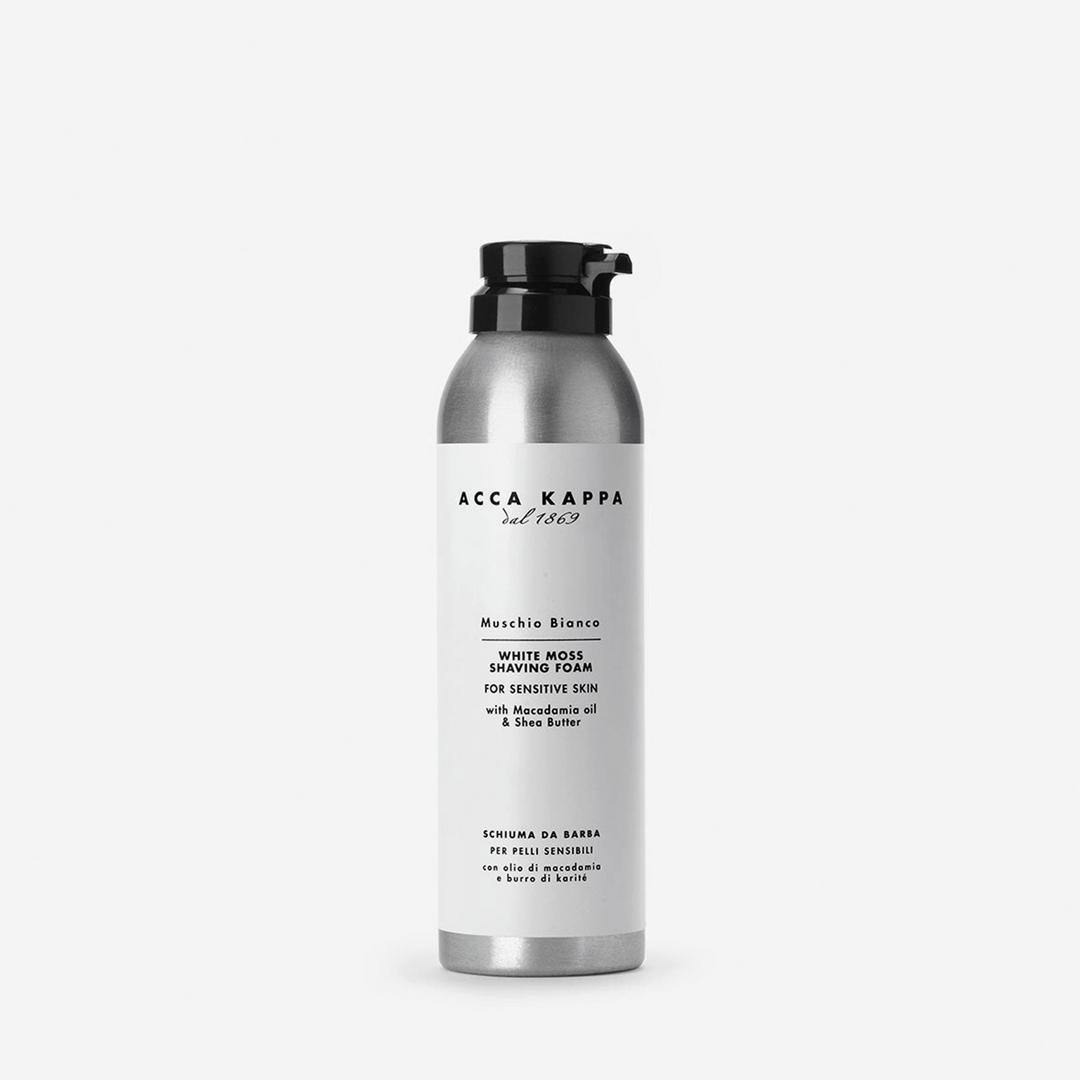 Acca Kappa’s White Moss Shaving Foam cushions and hydrates with macadamia, shea butter, and olive oil for a smooth glide. Ideal for sensitive skin, it soothes and nourishes while enveloping you in the clean, aromatic White Moss fragrance.