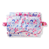 - Soft pink satin with flower, butterfly, and tiara print lining