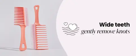 • Long U-shaped teeth with soft rounded tips that glide through the hair without pulling