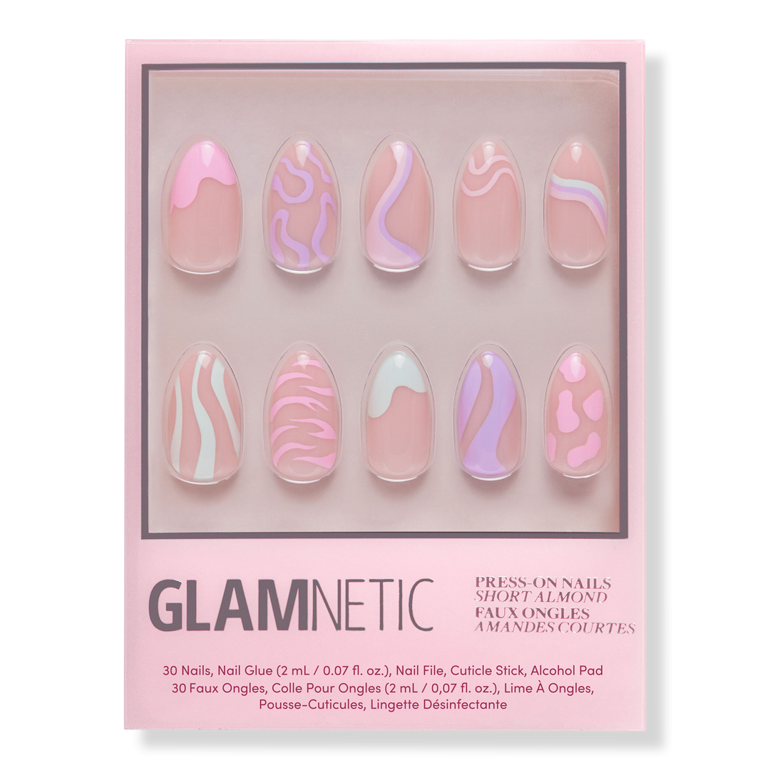 Glamnetic's Press-On Nails are meant to last up to 2 weeks with each set crafted from high-quality materials to prevent bending/splitting. The Wild Card Nail Set features a semi-transparent style that has an artsy design in pastels of pink, purple and green.