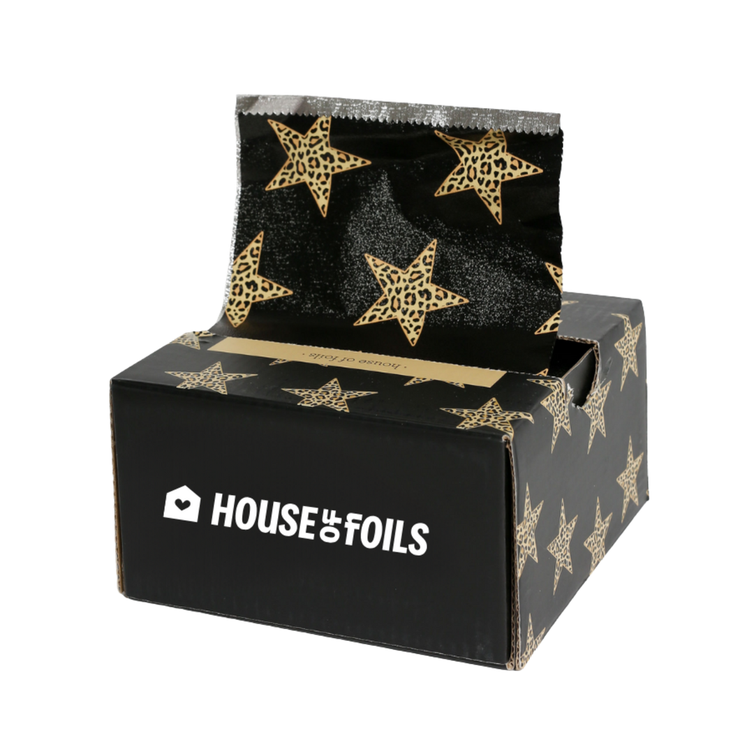 This hair foil is a total starry-eyed dream! With a black backdrop and cute cheetah print stars dancing across, it’s the perfect mix of wild and chic. It comes in our original 5 x 11 size with our signature unique texture