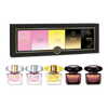 The Iconic Versace Five Piece Fragrance Collection! Includes: 0.17 oz Bright Crystal Parfum Deluxe Mini, 0.17 oz Bright Crystal Eau de Toilette Deluxe Mini, 0.17 oz Yellow Diamond Eau de Toilette Deluxe Mini, 0.17 oz Crystal Noir Eau de Toilette Deluxe Mini, 0.17 oz Crystal Noir Parfum Deluxe Mini.
