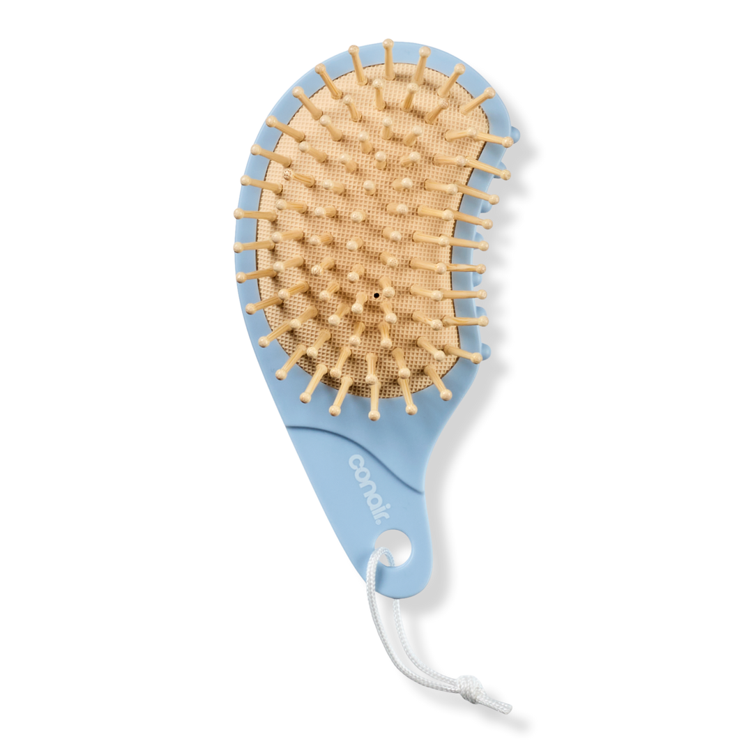The Conair® Wooden-Bristle Massage Brush turns your everyday hair care into a spa-worthy experience. Ball-tipped wooden bristles work their magic, stimulating the scalp while spreading treatments evenly from root to tip. Flip it over and discover rounded nubs that deliver the dreamiest neck massage.