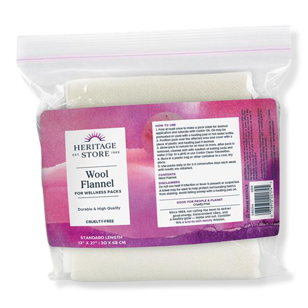 HERITAGE STORE Wool Flannel for Castor Oil Pack, Reusable & Highly Absorbent, 12 x 27 in.