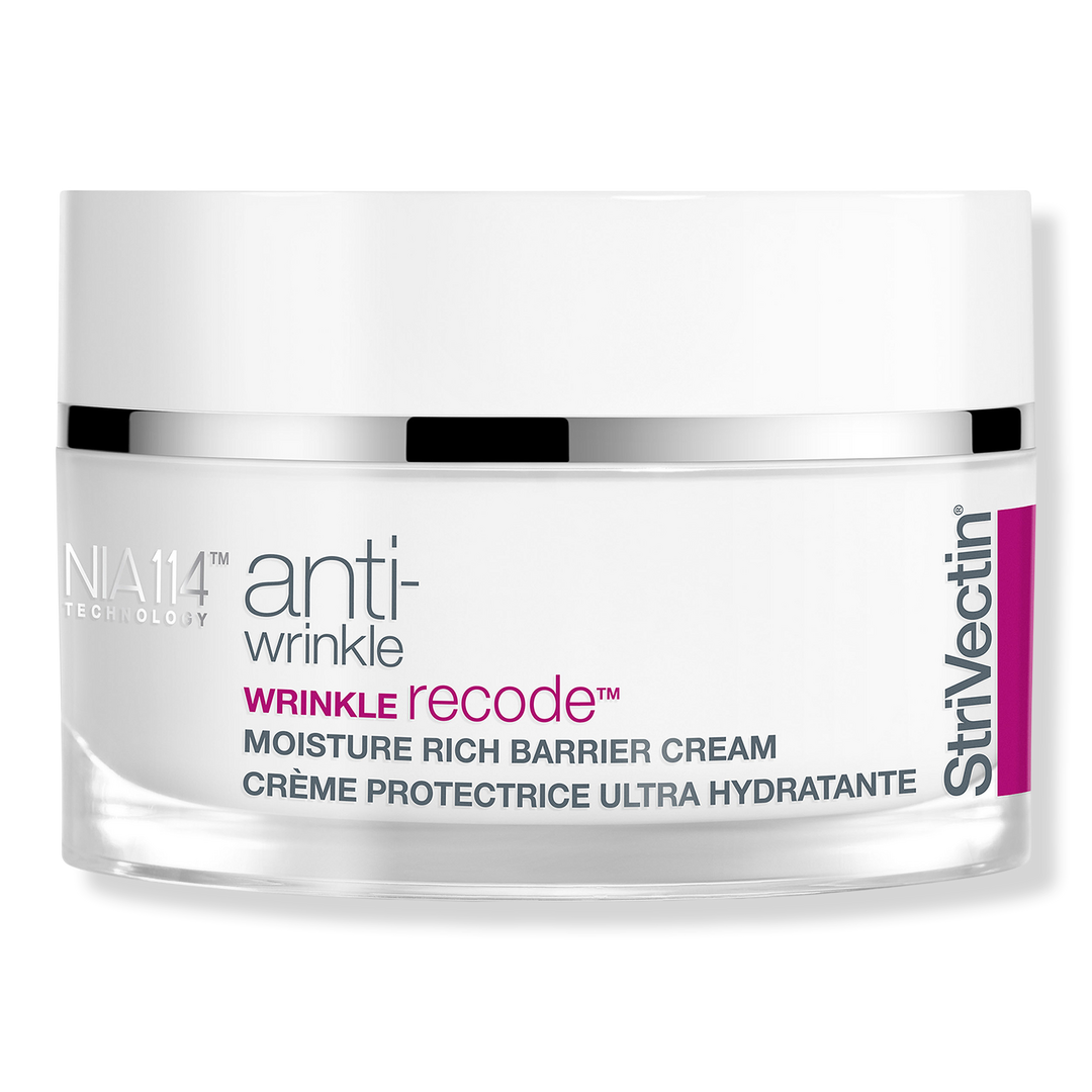 StriVectin Wrinkle Recode Moisture Rich Barrier Cream is an indulgently rich cream that combines patented NIA-114 with a carefully calibrated 1:1:1 Biomimetic Lipid Ratio of Ceramides, plant-derived Cholesterol and Free Fatty Acids to strengthen and nourish even the most delicate skin.