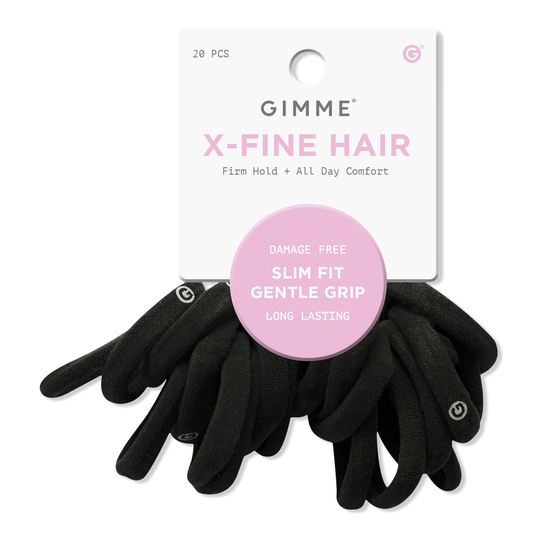 Discover Gimme Beauty hair bands, perfect for extra fine hair! Strong yet gentle grip, no snagging, breaking, dents, or creases. Effortless styling awaits!