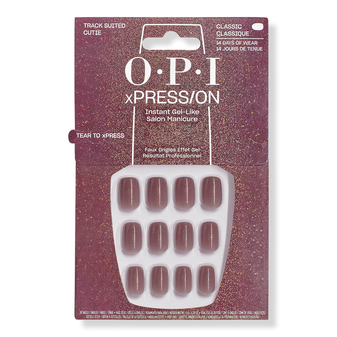 - Hey cutie, we know you've rocked a velour tracksuit or two in your day, but this one has OPI written alllll over it. This short length with a square nail shape is mauve, but don't get it twisted, these press-ons have shimmer for days.