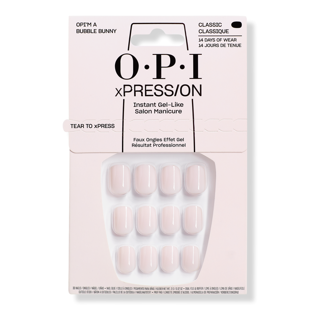 - A mixture of OPIconic shades, Funny Bunny and Bubble Bath, this creamy blush press-on nail set is always a winner.