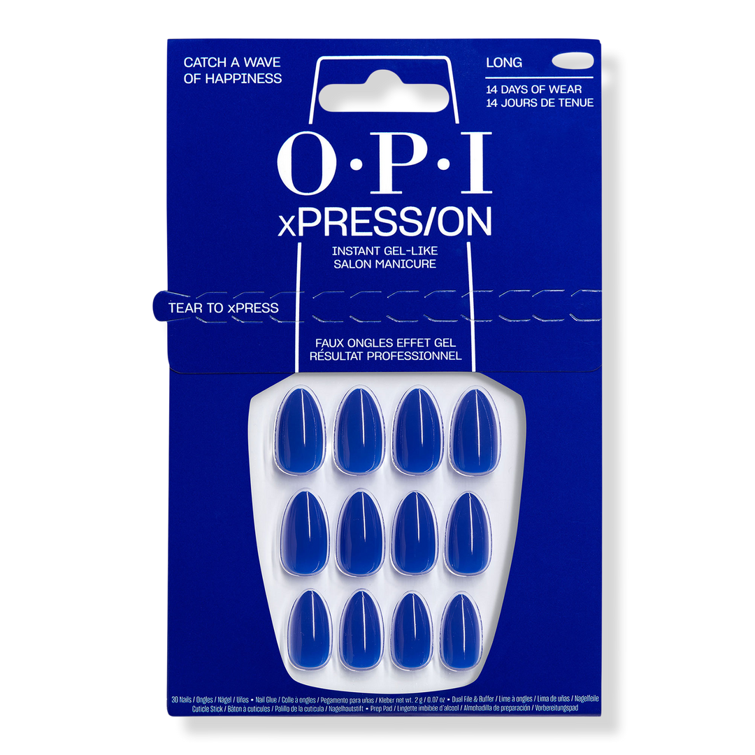 - Ride the wave with OPI Catch a Wave of Happiness press-on nails. Bold royal blue in a short almond shape brings shine and splash-worthy, beach nail style.
