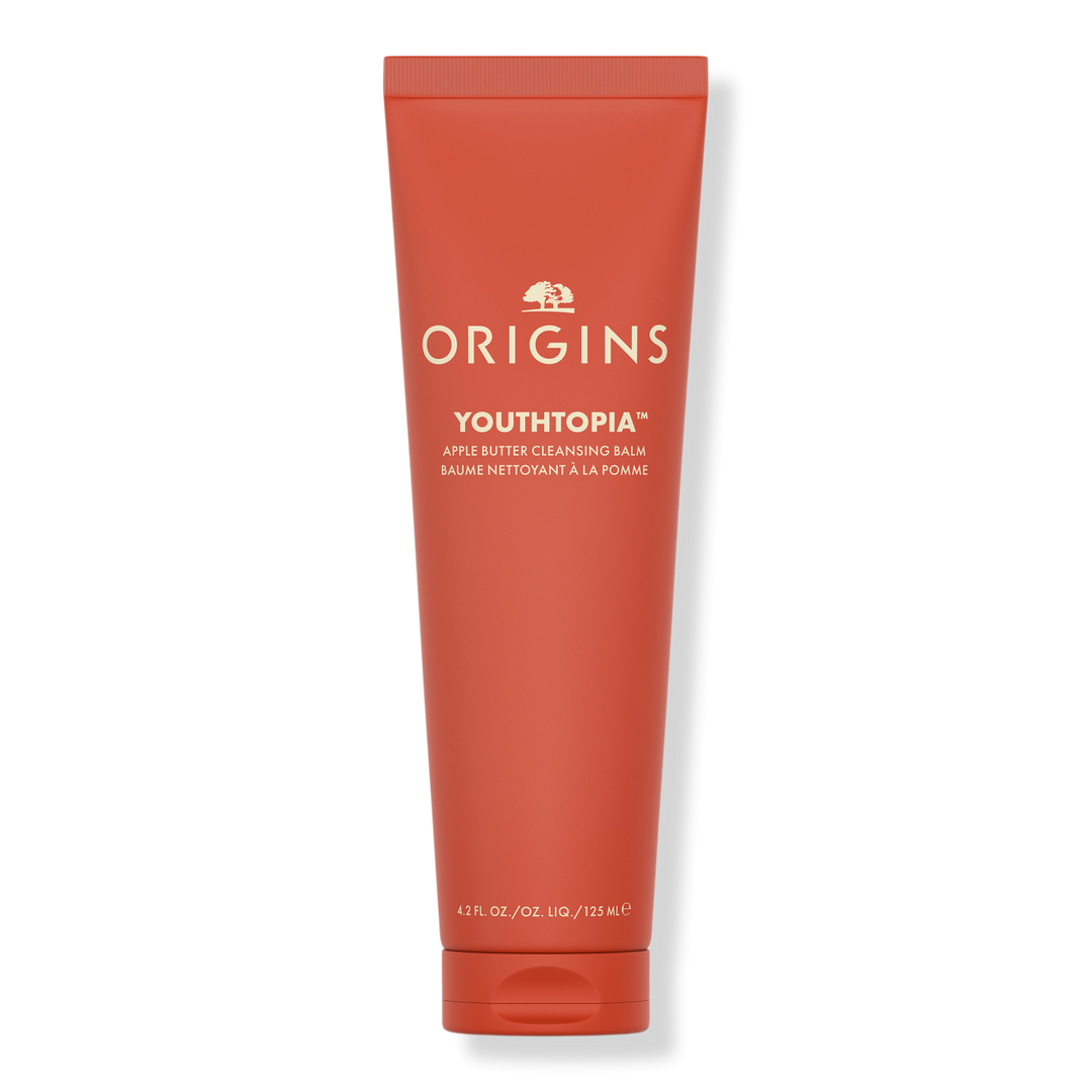 Origins' Youthtopia Apple Butter Cleansing Balm is made with omega-rich Apple Seed Oil & Shea Butter to help melt makeup & purify skin without drying or stripping.